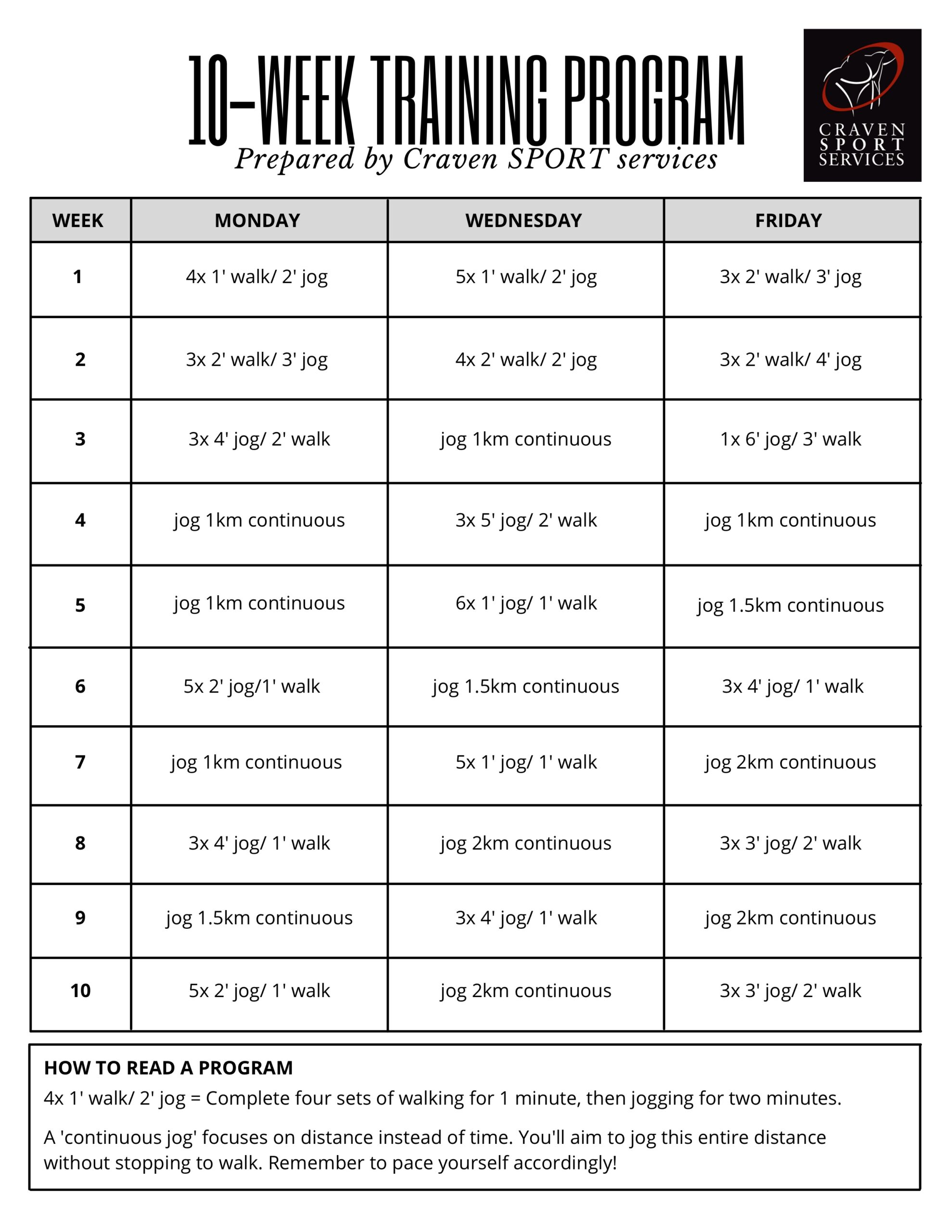 - A free 10 Week or 6 Week easy-to-follow training program from Craven SPORT services.