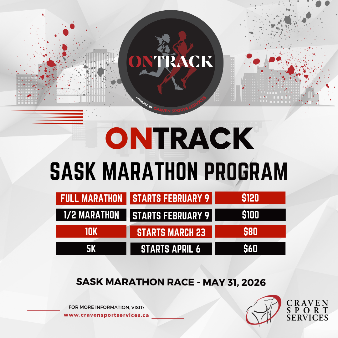 The OnTrack Sask Marathon Program is a collaboration between the Saskatchewan Marathon and Craven SPORT Services to deliver race training. New for 2026, runners can now choose between Beginner and Advanced training groups for every race distance.