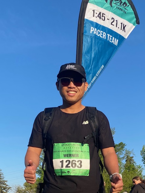 My name is Werner "June" Fetesio. I am the 1:45 - 21.1km pacer. This is my 2nd year as a pacer for Saskatchewan marathon. I have started running during pandemic of 2020. I have completed dozens of marathons and participated to pace full and half marathons. On the race day, it will be a steady pace around 4:55-5:00min/km. Happy to help to achieve your goal time! Happy training!
